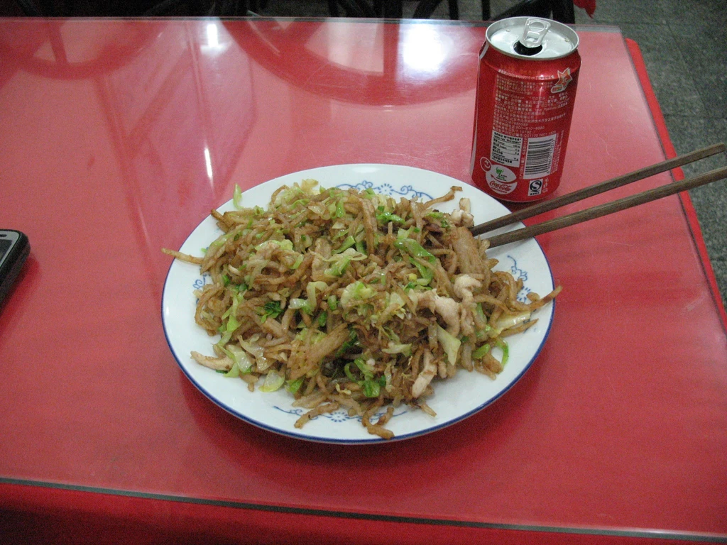 做法:将烙饼切成细条备用。锅中热油,先炒香葱蒜,加入猪肉丝翻炒至变色。放入胡萝卜丝、白菜丝大火翻炒两分钟。加入饼条,沿锅边淋入酱油、少许老抽上色,加盐、鸡精调味,翻炒均匀至饼条吸收汤汁、略带焦香即可出锅。