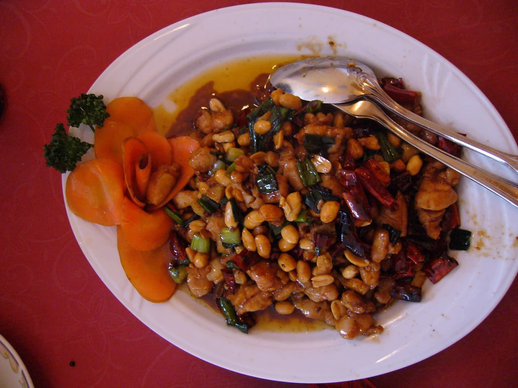 宫保鸡丁是一道著名的川菜,以鸡丁、干辣椒、花生和花椒为主要食材,口味麻辣微甜,鸡肉嫩滑,花生香脆,是中国最受欢迎的家常菜之一。